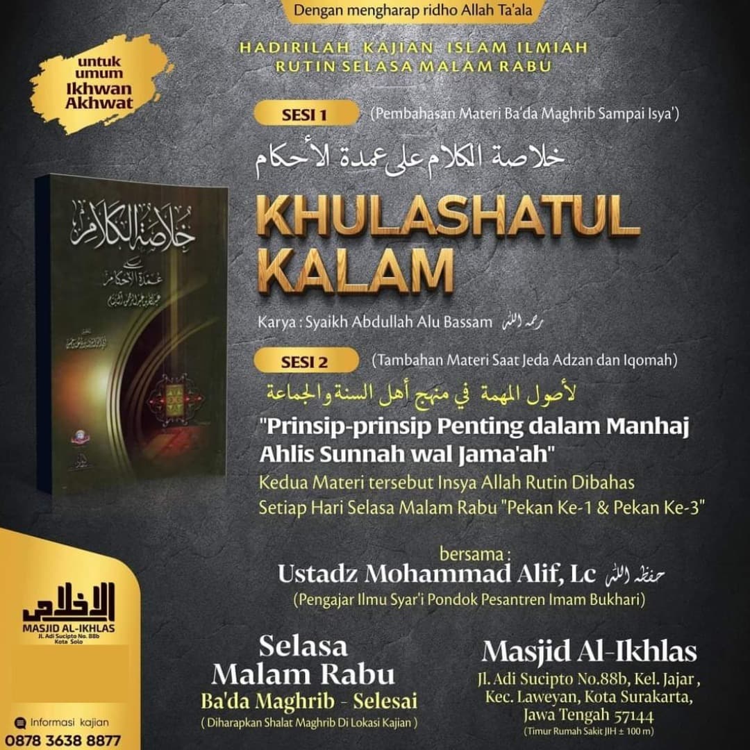 Tema: Khulashatul Kalam ‘ala ‘Umdatil AhkamKarya: Syaikh Abdullah Alu Bassam ️ Tanggal & Waktu: Setiap Selasa Malam Rabu⏰ Ba’da Maghrib […]