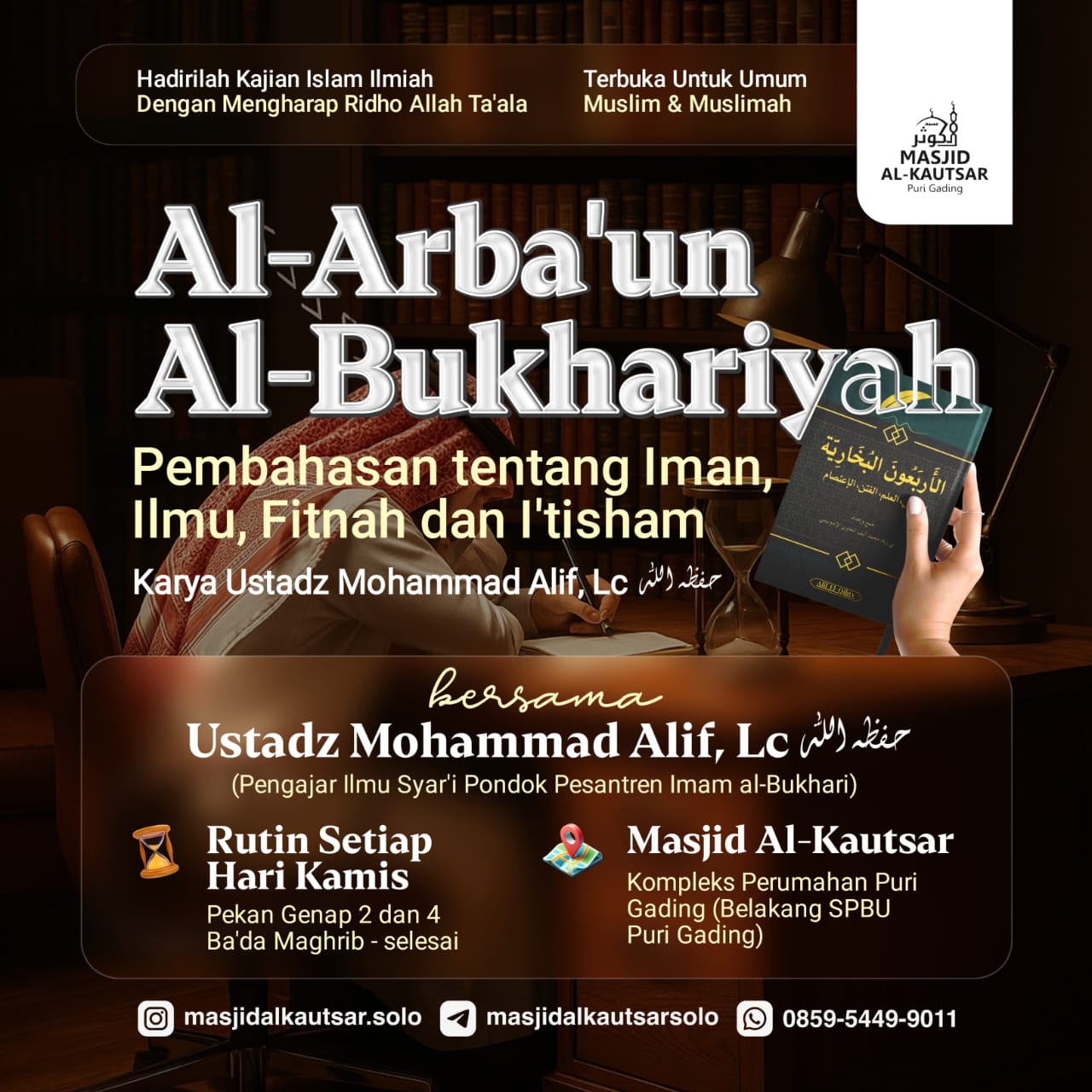 Tema: Pembahasan tentang Iman, Ilmu, Fitnah, dan I’tisham Karya: Ustadz Mohammad Alif, Lc. (hafizhahullah) Pemateri: Ustadz Mohammad Alif, Lc.(Pengajar Ilmu […]
